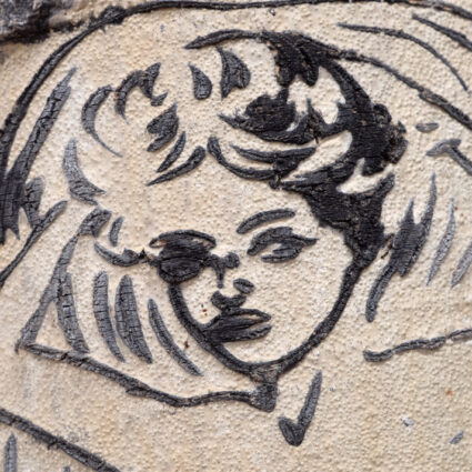 Yet nearly all of the works in The Alchemical Trace have a quality of queerness, one I can pin down only when I think of the feelings the works evoke in me. When I look at Virgo Paraiso’s Don’t Go Back to Sleep (2000), knowing nothing of its artist, my heart breaks a little. The subject, cast in decidedly religious light, drips with tears from his eyes and blood from his tattooed neck, where his head appears to have been cut off, while purple butterflies perch on his severed skin. It’s an exorbitant, lugubrious sadness, a sadness to relish. And this—the exorbitance? the mix of emotions? butterflies plus blood?—feels queer to me.