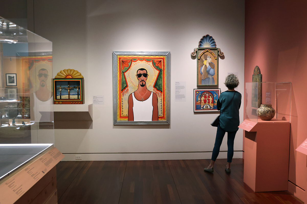 Gathering Place was shaped by the perspectives of four guest curators: Cassandra Atencio, artist, elder, and member of the Southern Ute Tribe; James M. Córdova, santero and associate professor of art history at the University of Colorado Boulder; Josh T Franco, artist and art historian; and Pat Musick, artist and educator. Together, they reframe the museum’s holdings not as static objects but as part of a living dialogue—artworks as carriers of cultural memory, continuously evolving alongside the communities that engage with them.