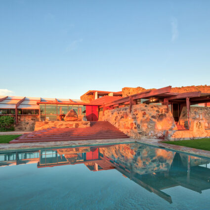 Fuller pictured human beings as passengers on a planetary vessel who must work together to keep it running properly. One could view the Earthship dwellings as miniature versions of “Spaceship Earth” because they behave like small-scale biomes mimicking the holistic processes of Earth’s intricate ecologies. Each building is different, yet all connect to the land and the environment in some way. Curving roofs, colorful shimmering glass and metal siding, and low structural profiles coordinate with the undulating mountains in the distance and sunlight reflecting off the desert floor. Enclosed skylight verandas act as greenhouses for lush tropical plants, vegetable gardens, and a busy spider or two. Solar glazing, open windows, and an internal water filtration system create a constant pleasant temperature and humidity level. Earthship Biotecture’s application of discarded items and industrial waste demonstrates how resourcefulness can actively visualize the world differently.