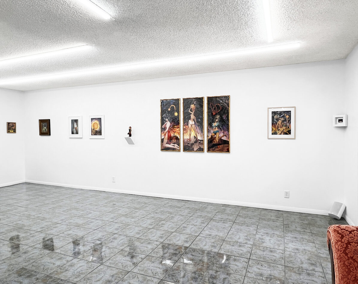 Continuing her fascination with the dramatic rock formations of the American Southwest, JK Russ pieces together surreal scenes incorporating seductive female figures melded with spiders, snakes, birds and bats.