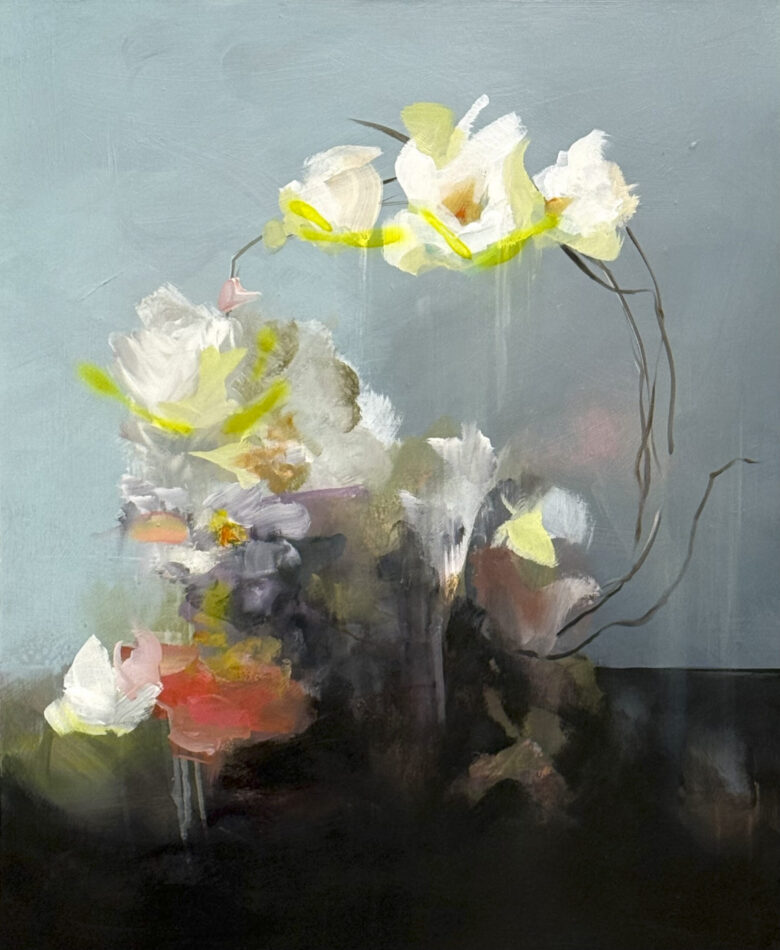Kim Largey uses the classic floral still life as a departure point for abstraction. Her acrylic paintings use gesture, composition, and color to explore how forms persist, transform, and destabilize over time. Working from both real flowers and imagined forms, the artist allows shapes to emerge, recede, and reassert themselves. Largey is based in Biddeford, ME.