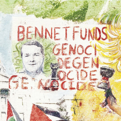 Of all the works on display here, Crystal Galindo’s Poder (2012) least fits the stereotypical image of the chola—but this is not why it held my attention. The subject is a Chicana haloed by yellow streaks of light that evoke both the Virgen de Guadalupe and the Statue of Liberty. Her face is heavily made up, the foundation so white that it floats off the light brown skin tones of her neck, and black streaks run down her cheeks like mascara bleeding into tears. In the foreground, the slope of her mountainous cleavage descends to the edge of the canvas. If the painting is a celebration of real body types, of culture, it is also a depiction of the struggle inherent to forging an identity, especially when that act is one of rebellion. In its exploration of the chola archetype through the work of artists with deep connections to their Chicano communities, Qué Chola offers outsiders a glimpse into that struggle.